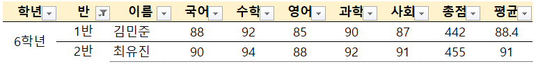 단순하게 필터링을 한다면 아래와 같이 각 반의 가장 첫 번째 있는 이름만 남게 됩니다.