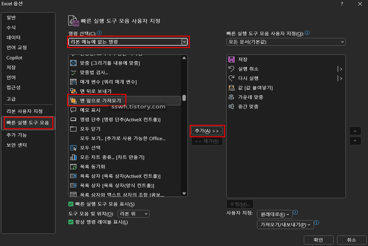 자주쓰는 기능 단축키 지정하기 - 빠른 실행 도구 모음 활용