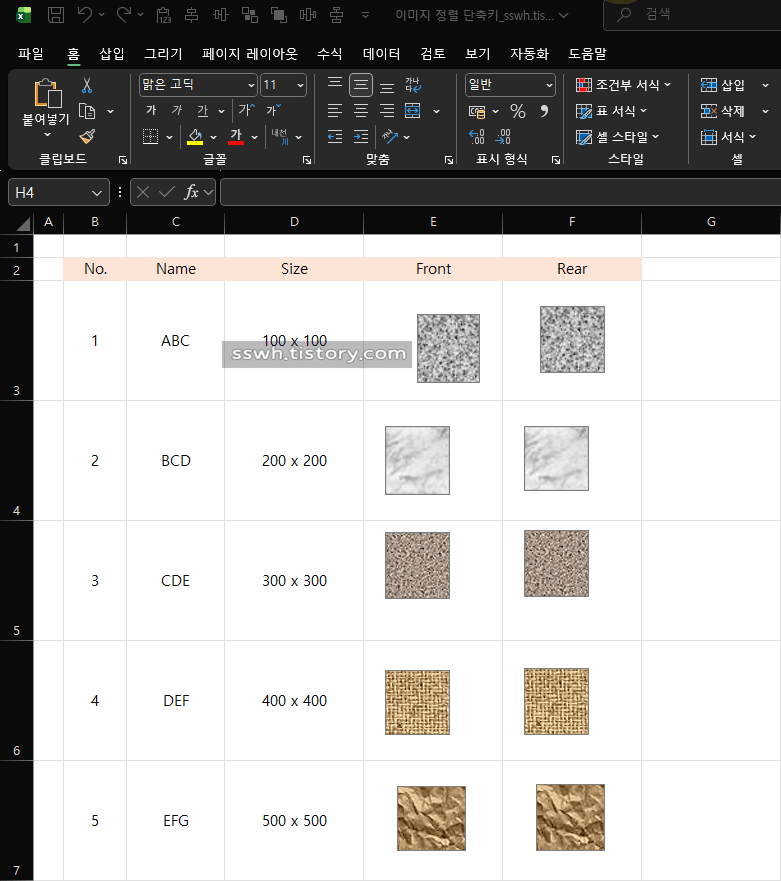E3셀의 이미지를 가운데 정렬하기 위해 임의의 도형 삽입 후 맨 뒤로 보내기를 단축키로 사용한 모습입니다.