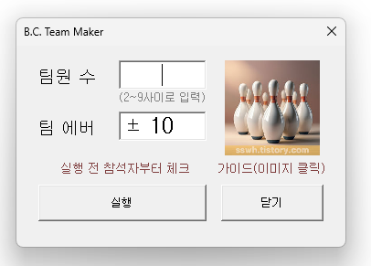 BC Team Maker 엑셀 버전 점수 관리 및 팀 분배