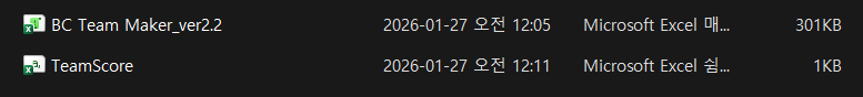 저장 위치는 BC Team Maker 엑셀 파일이 위치한 폴더입니다.