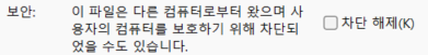 특히, 365버전의 경우 파일 우클릭 - 속성 - 보안 차단 해제를 해줘야 합니다.