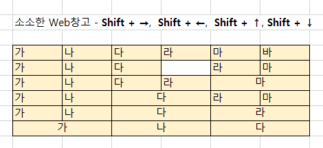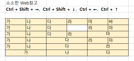 □ Shiftl+방향키 : 영역 선택(블럭 범위 선택)