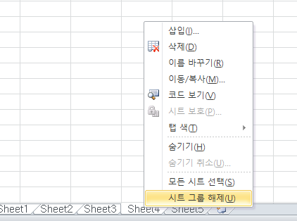 실수로라도 그룹으로 묶었다면 꼭 '시트 그룹 해제'를 해주시기 바랍니다.