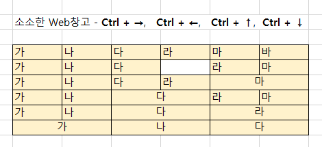 Ctrl+방향키, Shift+방향키, Ctrl+Shift+방향키 : 빠른 이동, 영역 선택