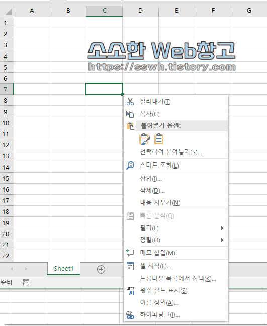 이번에 다룰 단축키의 내용은 새창 띄우기, 시트 추가 및 삭제, 우클릭 메뉴 호출, 셀 서식 호출 입니다.