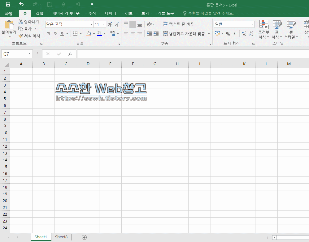 새 시트를 추가하는 방법은 몇 가지가 있지만 가장 사용하기 편한 단축키가 Shift + F11 입니다.
