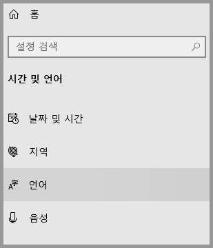 윈도우 검색창 → 언어 설정 입력 후 검색