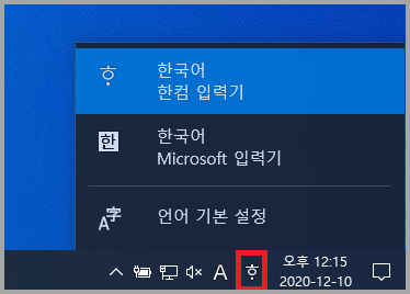 바로 한국어 입력기의 변화인데요. 아래 화면에서처럼 한컴 입력기로 설정되어 있을 때 위와 같은 현상이 발생합니다.