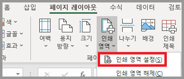 이렇게 범위 선택을 한 후 인쇄 영역 설정을 연계하여 사용할 수도 있습니다.