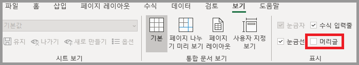 ① 보기 → 표시 항목의 '머리글' 체크하기