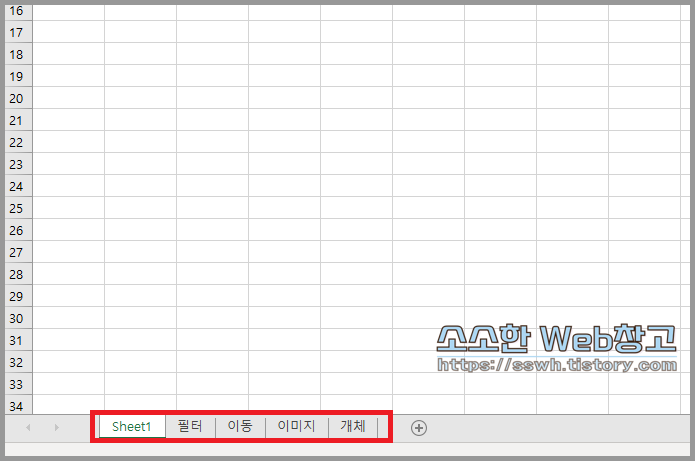 문서를 열었는데 시트 탭이 안보인다면 위의 방법으로 다시 표시한 후 저장해주시면 됩니다.