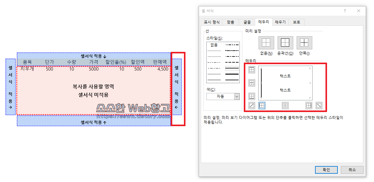 맞닿아 있는 셀에 테두리 서식 적용하기