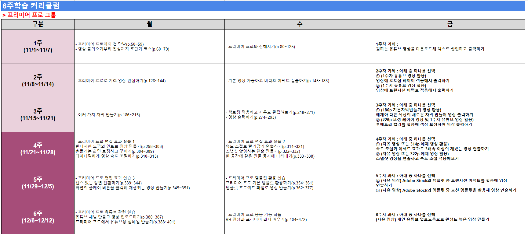 6주 학습 커리큘럼