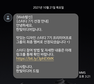 어쨌든 기분좋게 7기 스터디 멤버로 선정되었다는 문자를 받을 수 있었습니다.