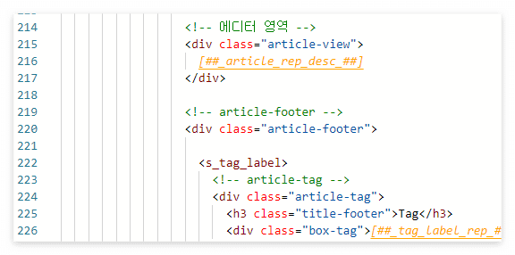 참고로 217행의 녹색 글씨는 제가 주석으로 달아둔 내용입니다. 추후에 또 언제 HTML을 편집할지 모르니 이런건 표시해두는게 좋습니다.