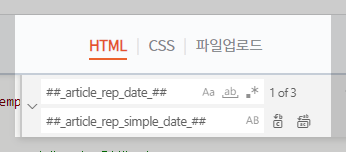 ② HTML 항목에서 Ctrl +F를 눌러 ##_article_rep_date_## 를 붙여넣습니다.