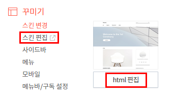① 꾸미기 - 스킨편집 - HTML 편집 순으로 이동합니다.