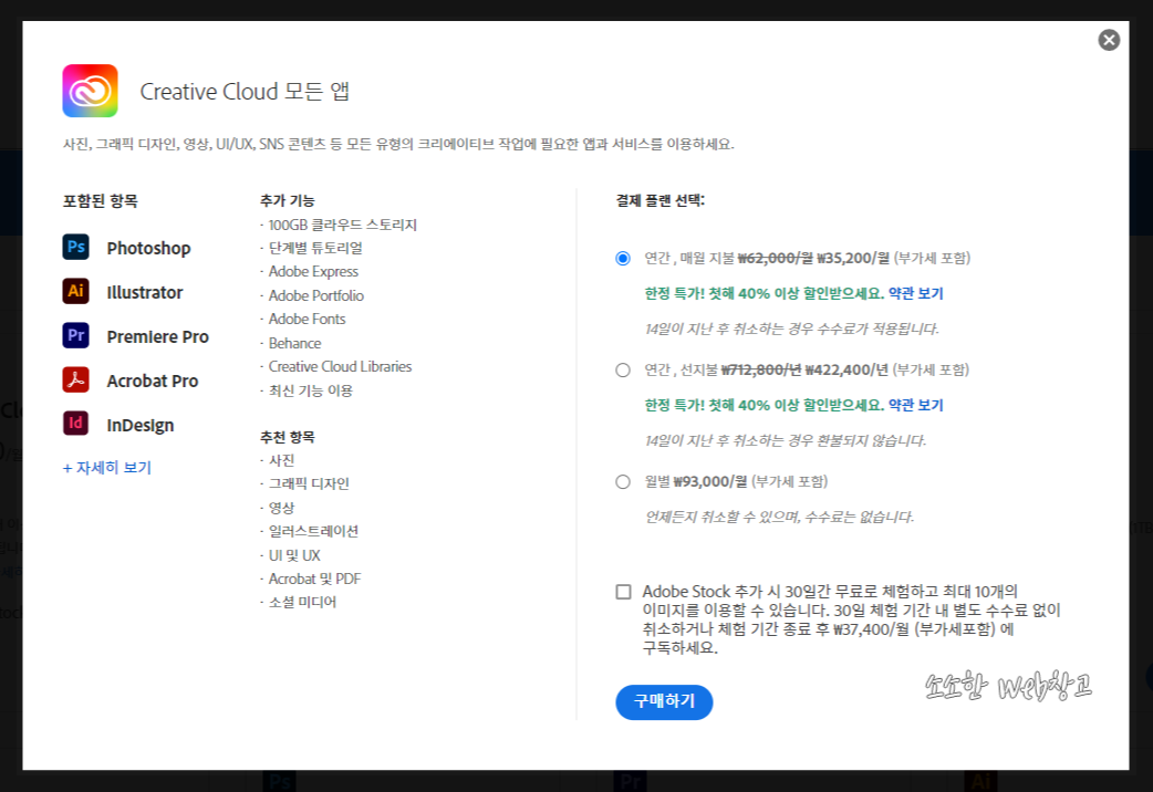 올해도 11월이 되면서 어김없이 어도비 40% 할인 프로모션이 시작되었습니다.
