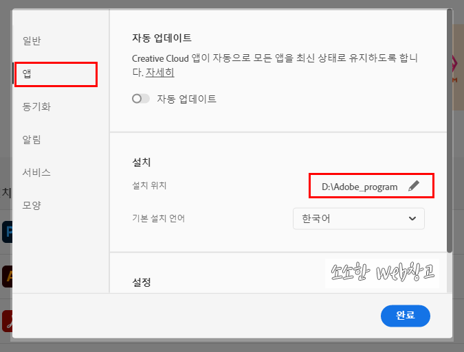 저도 어도비 프로그램을 설치할 때는 용량이 넉넉한 파티션을 배정해주는 편인데 위와 같은 이유로 한 번 삭제 후 재설치를 해야했습니다.