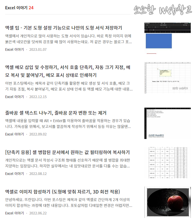 엑셀을 다루는데 도움이 될만한 팁을 포스팅하고 있습니다. 한 번 둘러보시는건 어떨까요?