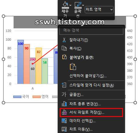 차트를 선택한 상태에서 마우스 우클릭을 해줍니다.