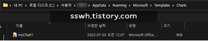 서식 파일로 저장을 선택하면 다음과 같이 AppData가 포함된 경로가 뜹니다.